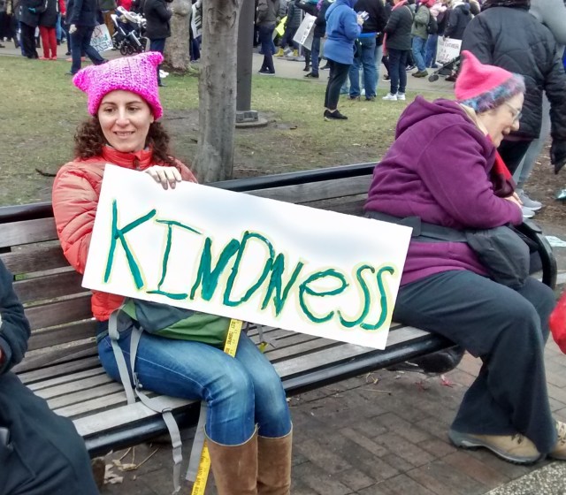 In spite of the anger and fear felt by so many, those who turned out for the Philadelphia Women’s March were kind. Friends who went to Washington and were packed onto the streets like sardines say that kindness characterized the march there, too.