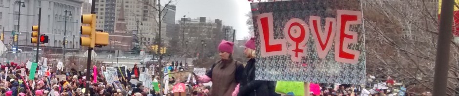 All over the country, people who have not been very active politically are gathering to meet with others, to discover what we can do collectively to face the troubling reality in which we find ourselves. Members of my Quaker Meeting organized a group of twenty Friends to participate in the Women’s March in Washington, D.C. the day after the inauguration, including whole families: mothers, fathers, children. I feared the possibility of standing in the cold for hours and did not sign up. But January 21, 2017 turned out to be a sunny day, so my husband and I joined the Women’s March in Philadelphia. Like half a million people in Washington, and the millions who came out in other cities, we found ourselves participating in one of the most amazing, creative, and joyful events of our lives.