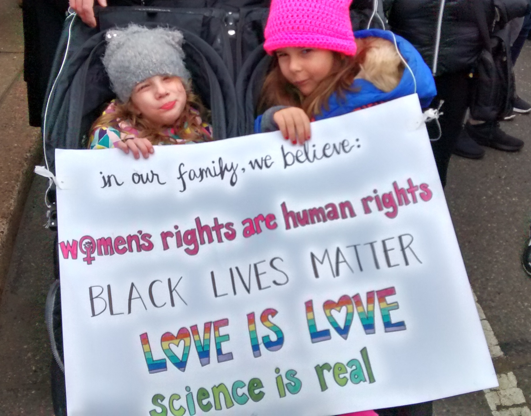 Some members of my family and my husband’s are conservative Christians who voted for Trump; they believe that the most important issue in the world today is protecting unborn babies, and they imagined that his presidency would do that. From slanted news reports, some assumed that the Women’s March was all about abortion rights and that the “pussy hats” worn by many women were a symbol of this.