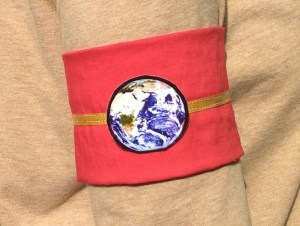 During my bus ride home, I began to visualize a red armband with a gold ribbon around it, topped by an image of our beautiful Earth.