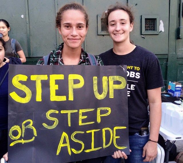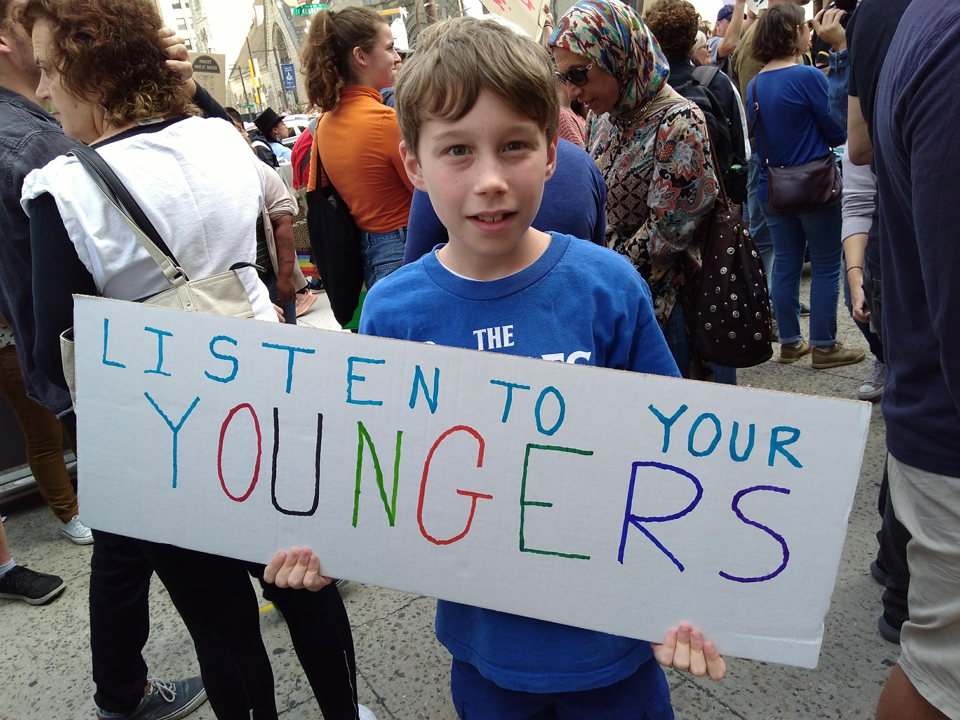The biggest thrill of September 20 for both of us, and Rachel (above), was all the new voices speaking to our social condition in their many different ways. And the matching thrill of being able to stand with them and say “Yes!” But of course that level of slogans on signs is only the crucial start of the process for these children. And the words in your post took the next step.
