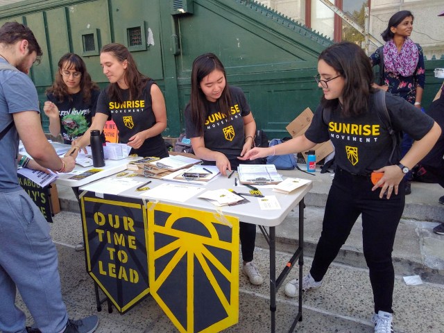 Sunrise Movement Sunrise is a movement of young people dedicated to stopping climate change and creating millions of good jobs in the process. They want to elect leaders that will stand up to special interests and make the health and well-being of people and the planet a priority.