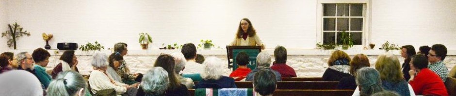 So, I did. I spoke with my faithfulness group, and they helped draw out more about my growing edges in faithfulness. I enlisted my husband’s help several times as I prepared. He invited me to reflect on my intentions and consider how best to help the group experience what I would be talking about. I invited a member of my meeting’s oversight committee for my ministry to serve as my elder during the talk; she sat near me and held me and the gathering in the Light. Eight days beforehand, I stood up at Swarthmore Meeting during the time for prayer requests, and said I was in the “high anxiety” stage before the lecture. I asked my faith community to hold me in the Light. Afterward, I was deeply moved that numerous people let me know they would do so. Several offered encouragement and reassurance; some spoke of their own experience preparing for a talk. One member of my meeting told me that when the college students she teaches are nervous about giving a talk, she tells them, “Someone may benefit from what you have to say.” Her words spoke to my heart and reminded me that I didn’t need to strive for some ideal of an inspired speaker. I needed, instead, to think about offering something that might be helpful to those listening.
