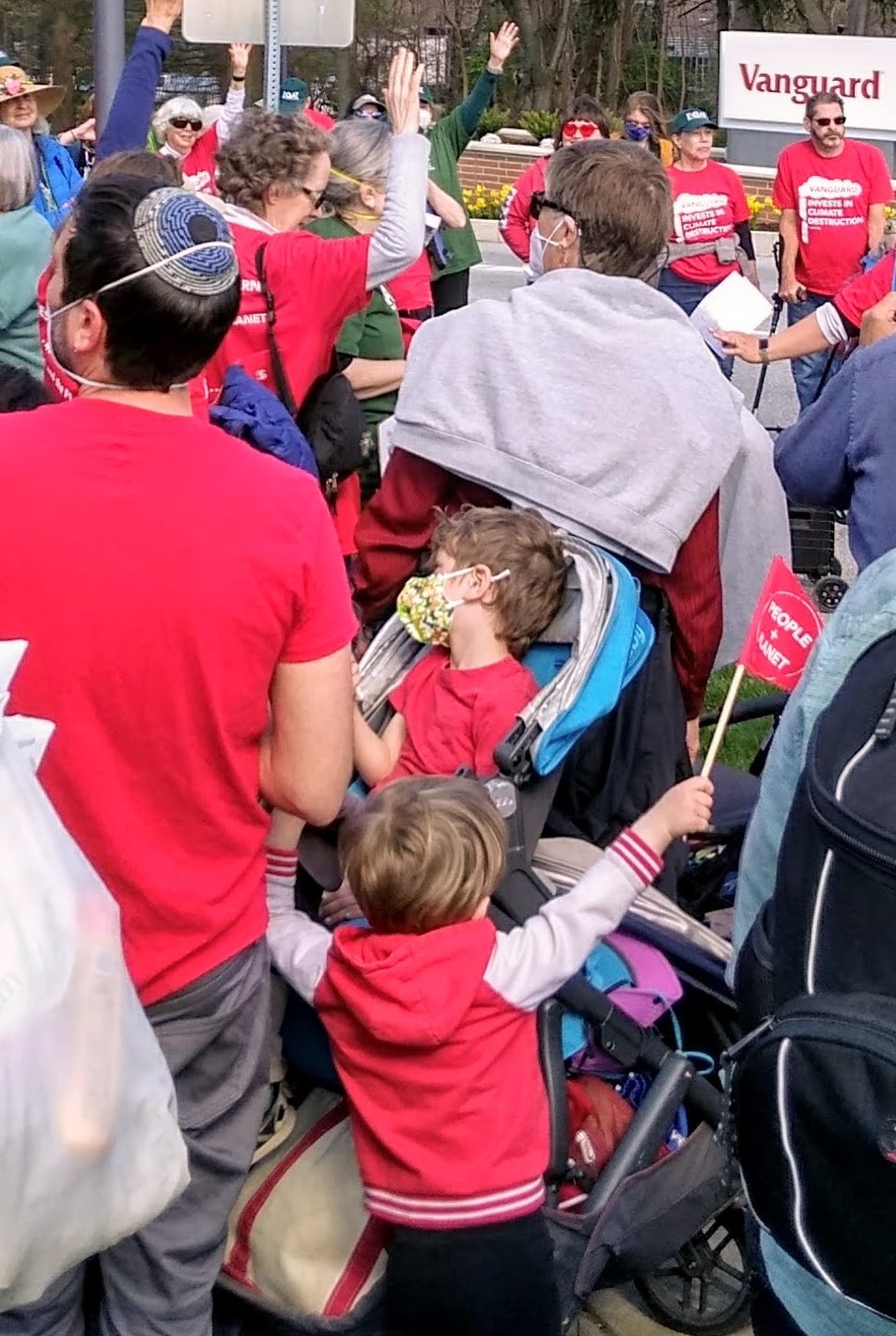 Because this demonstration was based in faith, it recognized that the CEO and employees of Vanguard are people with children and grandchildren, people who also have a desire for a livable planet. The demonstration included not curses, but prayers and blessings for the wise management of the huge financial power that Vanguard wields.