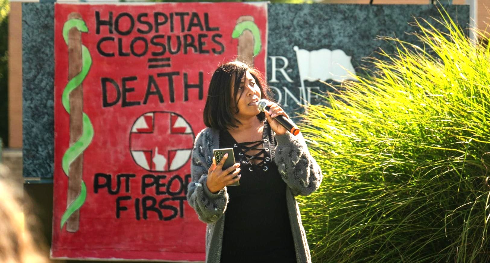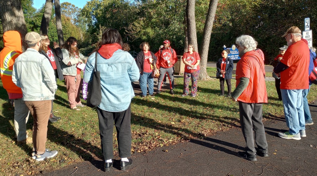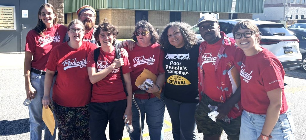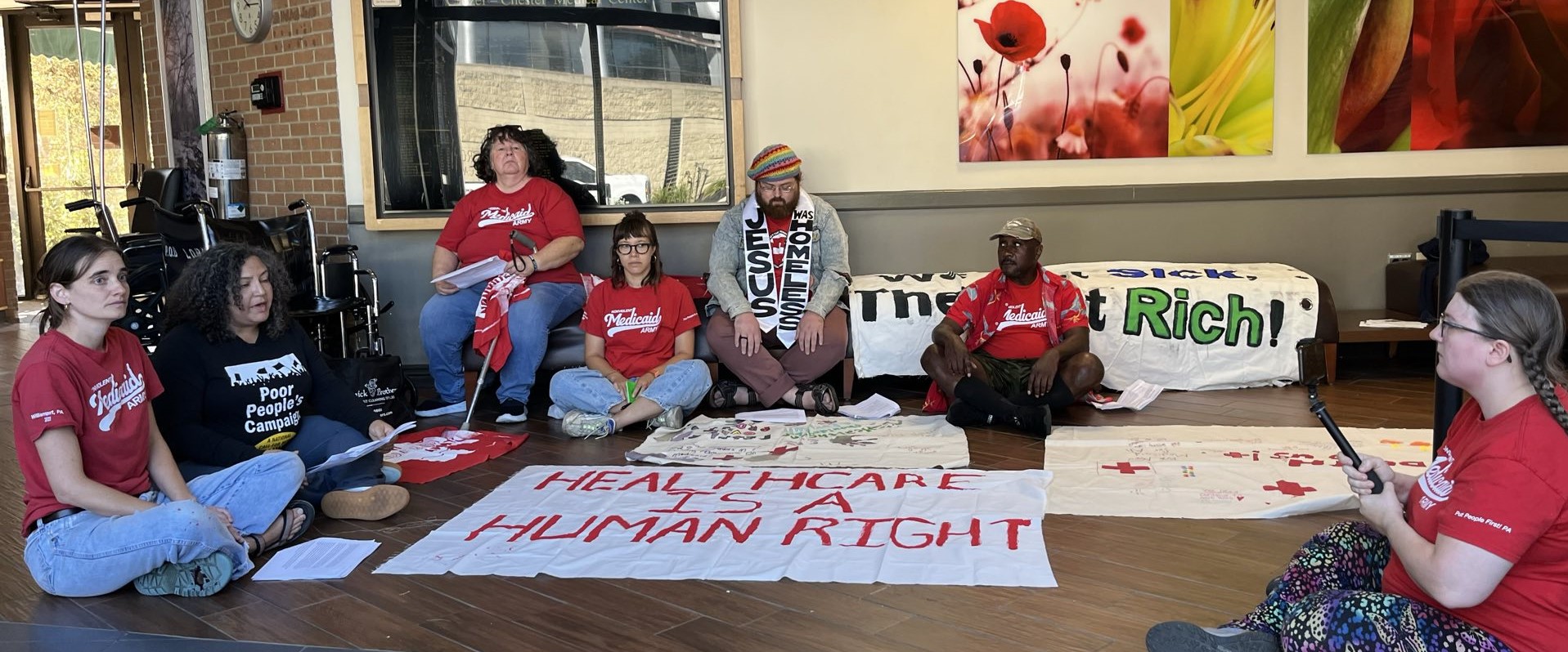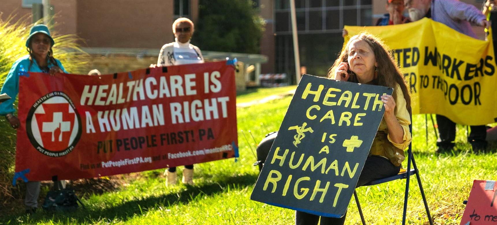 The protesters were members of at least two groups. One, Put People First! PA, a politically independent organization, had organized a “National Day of Action,” holding protests at four different sites across Pennsylvania where local residents have lost access to medical care because of corporate greed. The event held in our area, “Speak Out @ Crozer,” called on Delaware County to use eminent domain to reopen Crozer and to protest hospital closures caused by the corporate misuse of healthcare assets. Another group participating in the protest, the Nonviolent Medicaid Army (NVMA), is a national advocacy organization that organizes days of action focused on Medicaid, health access, and hospital closures. Both groups insist that healthcare is a fundamental human right.
