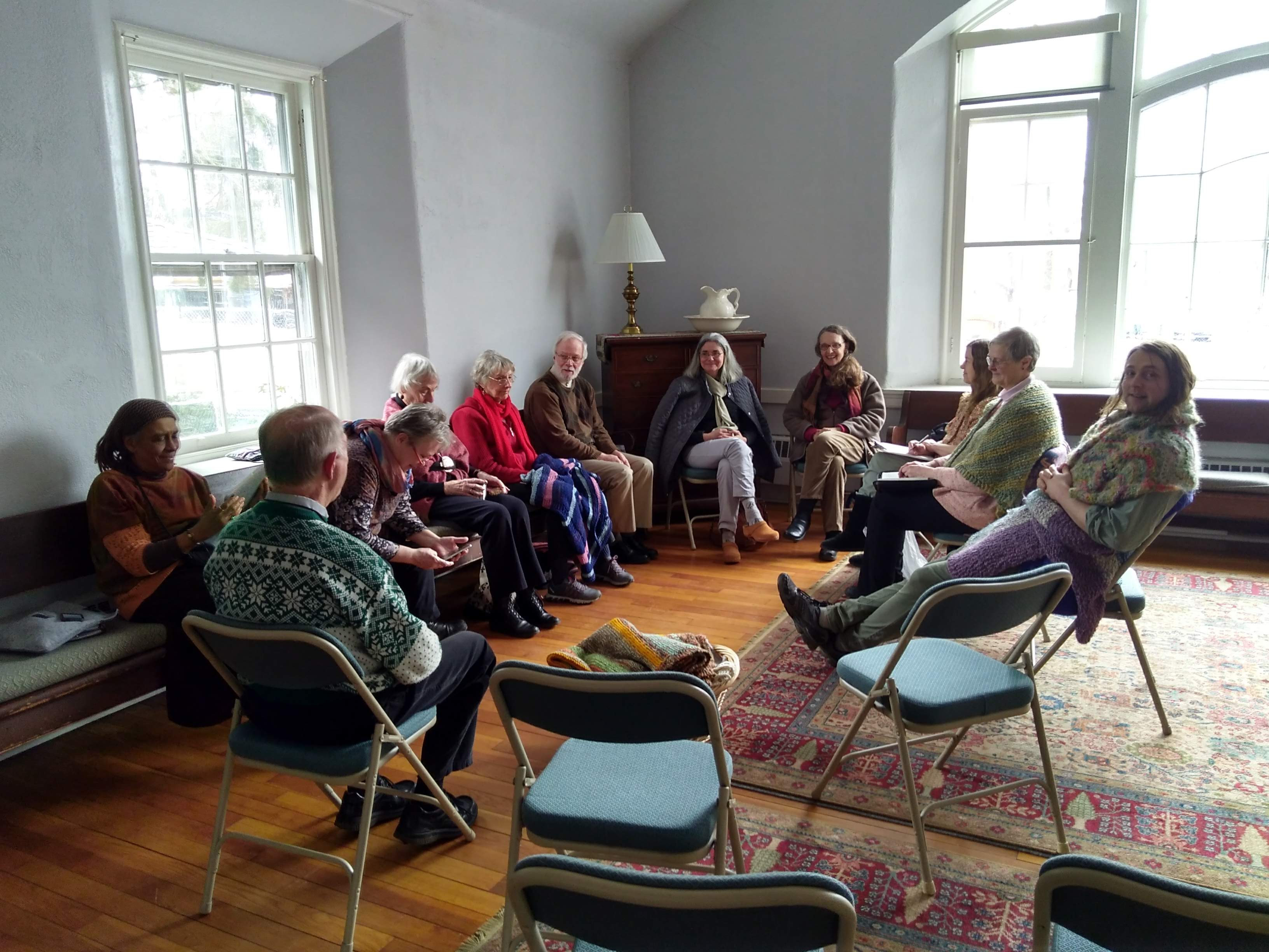 Since 2020, these gatherings have been held online monthly via Zoom, usually on the first Saturday of the month. In-person gatherings in the Philadelphia area are now infrequent, and a special opportunity to be gathered by the Spirit together. At Quaker Meetings in New England, in-person gatherings are now being held about five times a year. If you attend an in-person gathering, remember to bring your lunch.