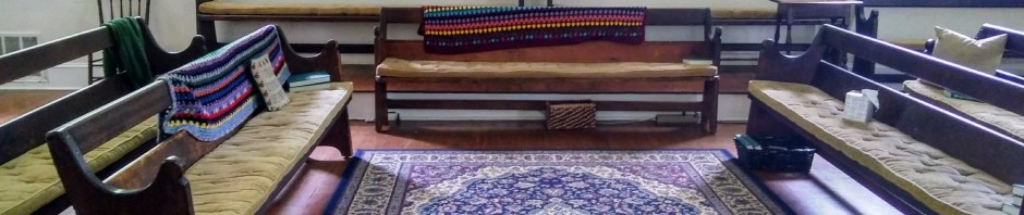 During the course of the hour, anyone present who feels in need of prayer may stand up and walk to the chair, either remaining silent or saying a few words about what’s in their heart. Each person who sits in the center is asked if they are comfortable being touched. Only if they say “yes” do others come and touch them. Placing hands on another person may not be right for everyone, and it may be best to wait for a leading of the Spirit before doing so. It is also appropriate to stay seated on a bench and pray for someone from a distance.