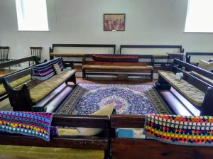 A meeting for prayer and healing lasts for about an hour. Participants sit in prayerful silence on the benches around a center, in which a chair is placed.