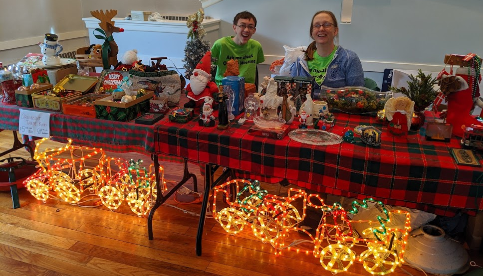 The entire meetinghouse will be turned into a giant store filled with second-hand treasures at bargain prices, plus homemade treats and desserts. Departments include housewares, furniture, books/CDs/DVDs, plants, toys, games, camping and sports equipment, photography equipment including scores of brand new frames, Christmas stuff, jewelry and other valuables, baked goods, tools and art.